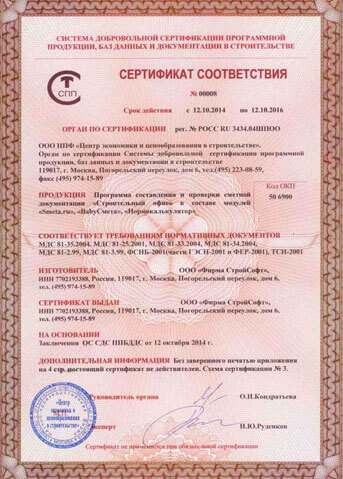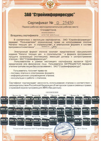 Защита программы обеспечивается электронным ключом USB. Лицензионность программы подтверждается регистрационной картой, а все, поставляемые в формате ПК «Smeta.ru» нормативные базы и индексы пересчета, именными (с указанием пользователя (получателя) в документе) сертификатами от правообладателей.