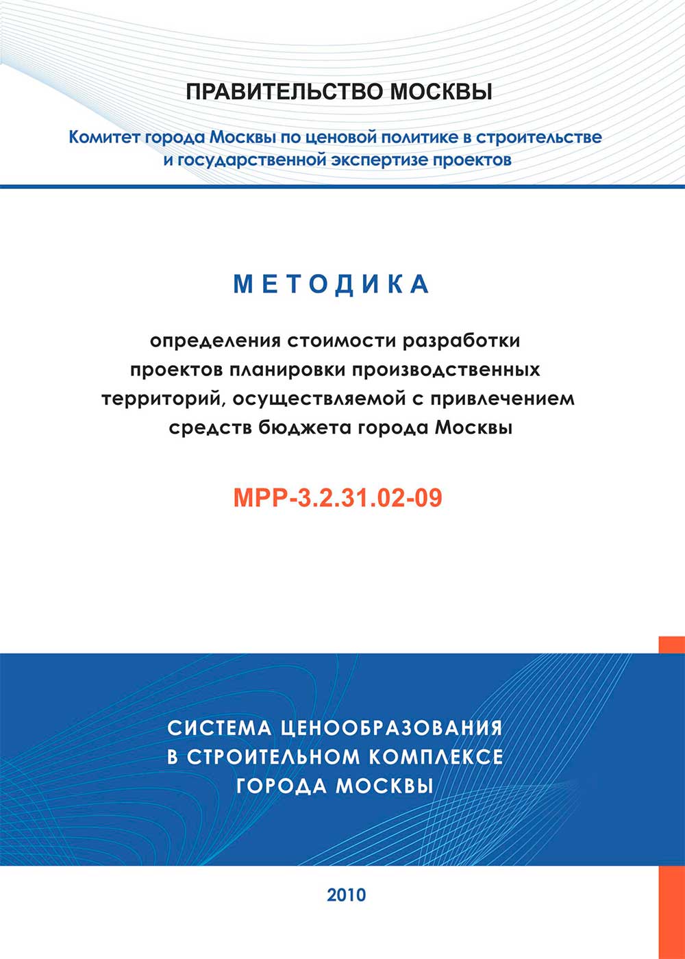 МРР-3.2.31.02-09 - Методика определения стоимости разработки проектов планировки производственных территорий, осуществляемой с привлечением средств бюджета города Москвы.